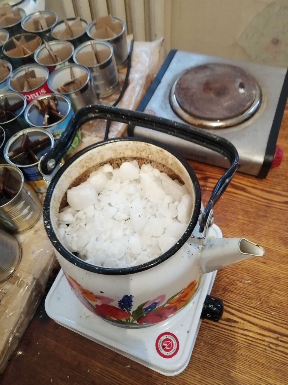В олонтеры отряда «Чистый берег реки» и Никольского Казачьего собора изготовили 100 окопных свечей для бойцов подразделения «Ахмат» в Курске.