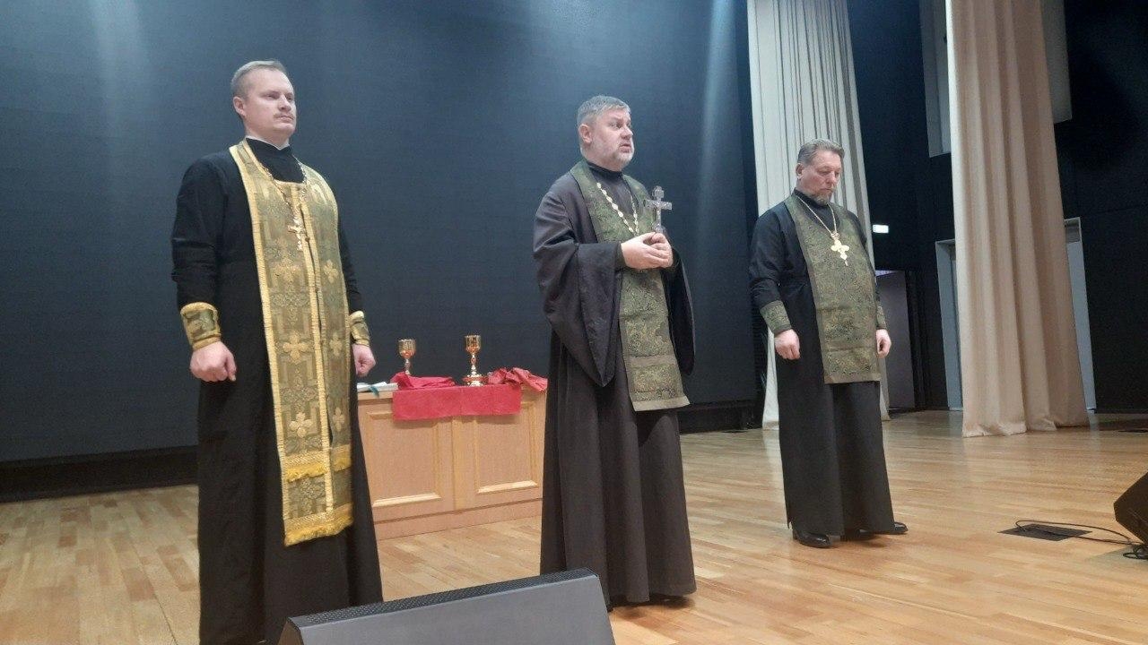 Таинства Исповеди и Причастия совершили священнослужители Омской епархии: иерей Дионисий Гришин, председатель епархиального отдела по взаимодействию с Вооруженными Силами и правоохранительными органами, иерейПетр Поляков, духовник воспитанников Омского кадетского военного корпуса, иерей Сергий Тюкин, священник епархиального отдела по взаимодействию с Вооруженными Силами и правоохранительными органами.
