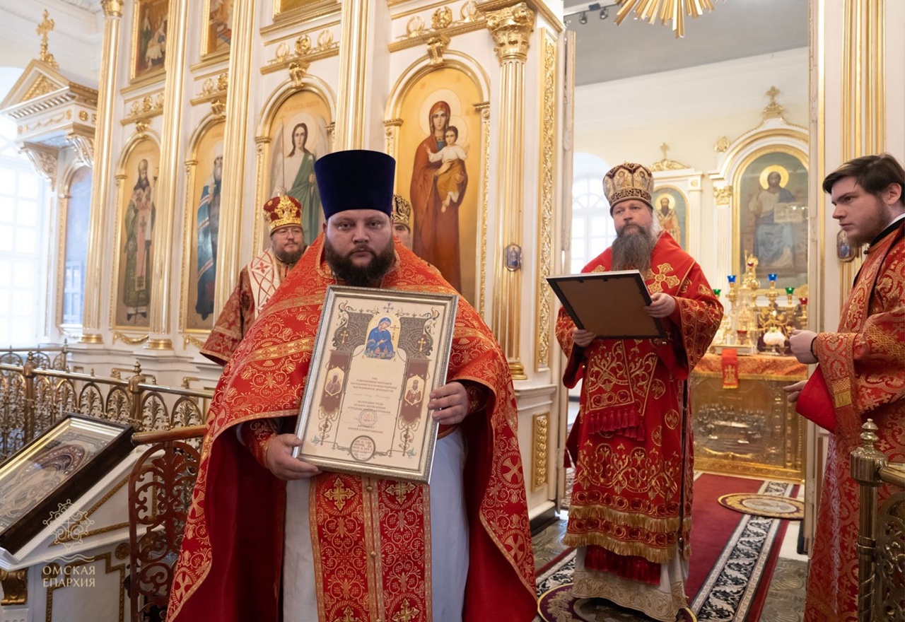 Архиерейскими грамотами были награждены: настоятель храма Нерукотворного образа Спасителя, председатель отдела Омской Епархии по взаимодействию с казачеством иерей Олег Филиппов, войсковой старшина, атаман городского казачьего общества Николай Мизов, советник Отдела дополнительного образования и кадрового развития системы образования Елена Полежаева.