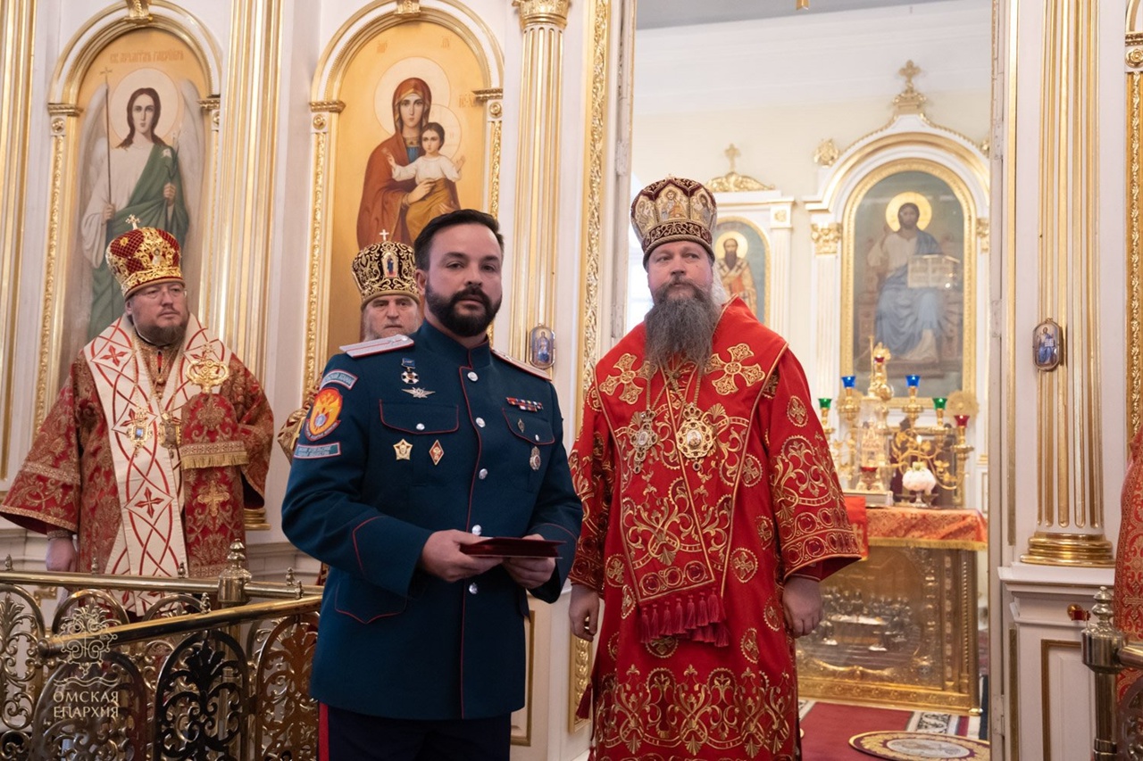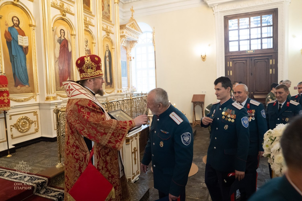 Получили свидетельства благодарности Епархиального архиерея за усердные труды есаул и председатель Совета стариков Омского отдельского казачьего общества Валерий Мохнарев и сотник Евгений Вельгоша.